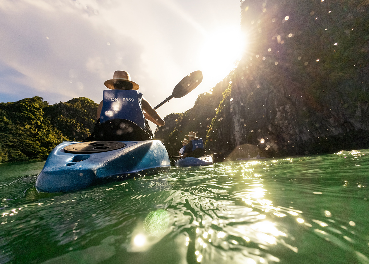 Main activities: Kayak in Ho Ba Ham area, Enjoy a complimentary 40′ herbal foot bath & wellness treatment, Swim/Relax at all-season swimming pool, Savor Cocktails with Sunset view, Relieve with “sleep well” meditation session